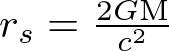 When all is done everything cancels out except for meters. The r sub s term grows linearly with mass and is equivalent to the radius required for the mass to have an escape velocity of the speed of light. Working the math out for the mass of the earth we get: